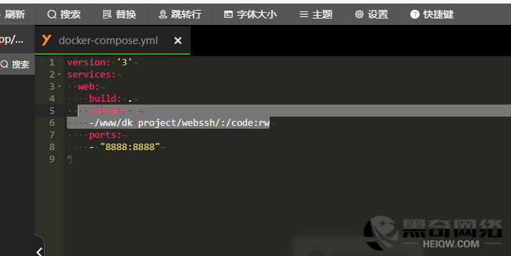 2、拉取完后刷新,进多出来的webssh,加一下docker-compose.yml的映射代码